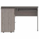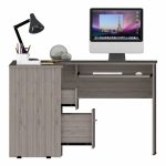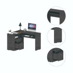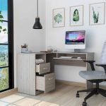Idra L-Shaped Desk, do you need more room to spread out and get things done? This computer desk is perfect for small spaces because it fits nicely into a corner. But don’t let its size fool you. This desk is packed with features. It has two drawers for storing supplies and papers, open shelving for displaying books and Decor, an ample work surface (41,3”W x 47,2”D), and a retractable keyboard tray so you can type in comfort. Designed with elegant light gray, gray oak, and black wengue manufactured wood finish.