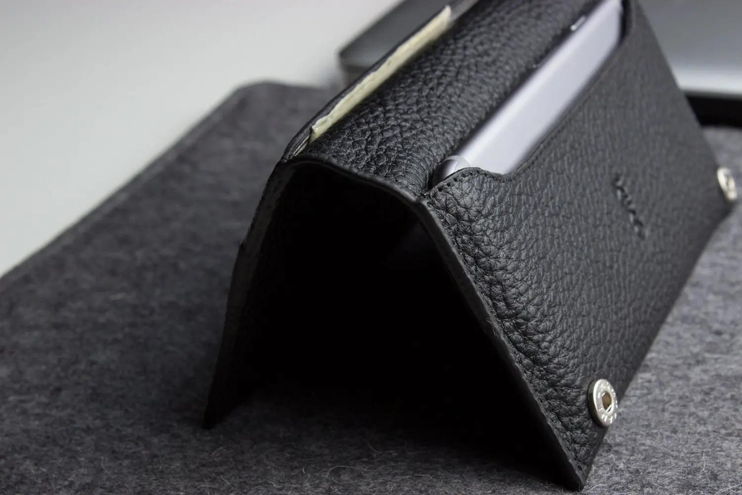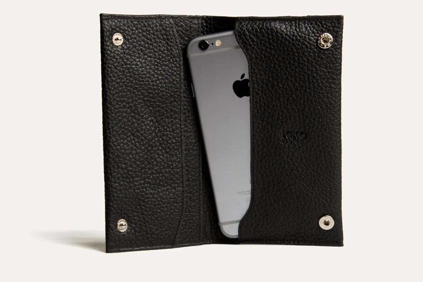 Our iPhone Wallet is handcrafted with pebblecowhide leather. The Wallet fits the iPhone 6 and 6S featuring a button closure with additional pockets for cards and cash.