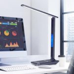 A multifunctional lamp with a Phone Charger, a Clock, and a Thermostat.