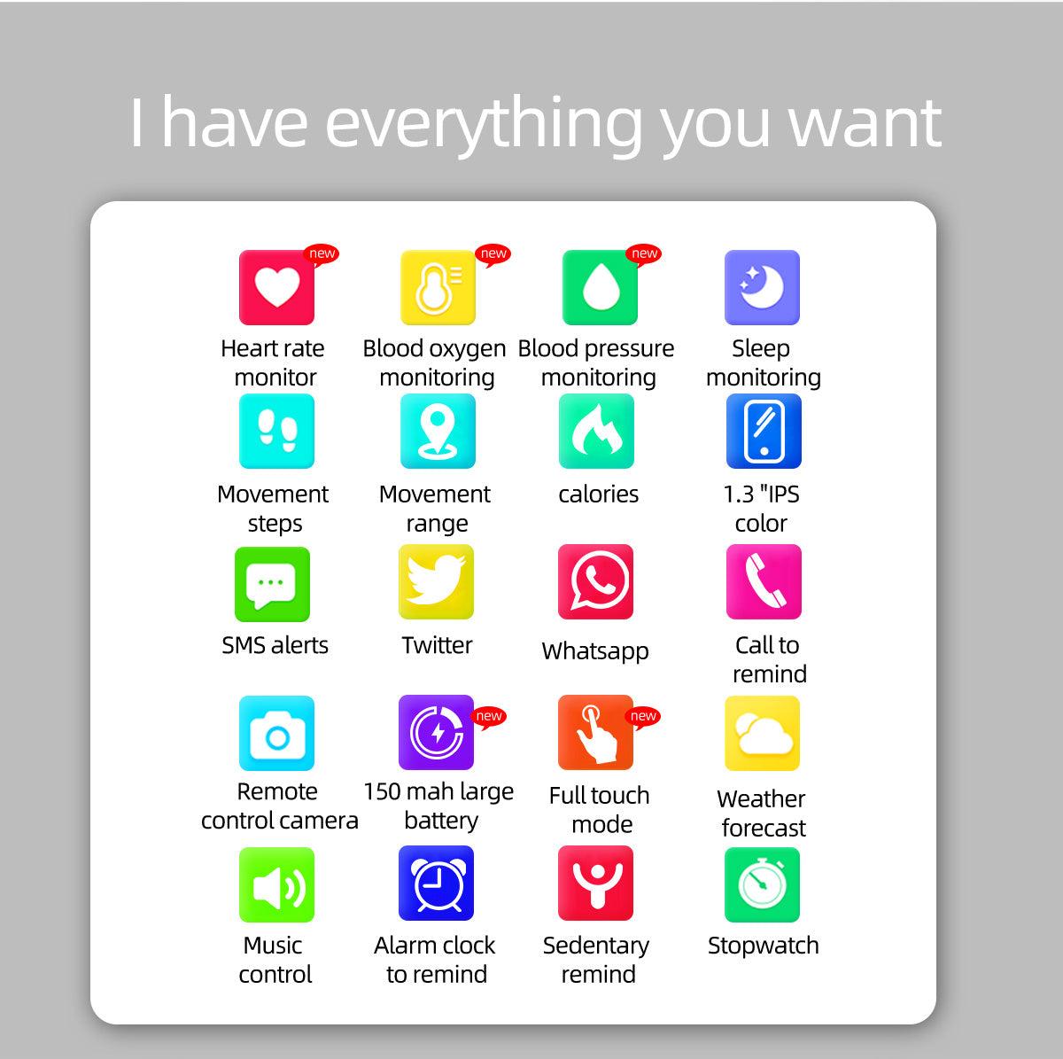 It’s your own personal Live Thermometer that comes with a body temperature detector and tracker.It also has a Live Oximeter that tracks your Blood Oxygen Levels. ThePulse Monitor continuously tracks your Heart Rate and monitors your Blood Pressure on demand! Lastbut not least,It also has all your daily routine tracker with activities like walking the distance, climbing steps, sedentary reminders, and sleep monitor and gives youall the important health data right on your wrist, without ever stepping in a clinic!